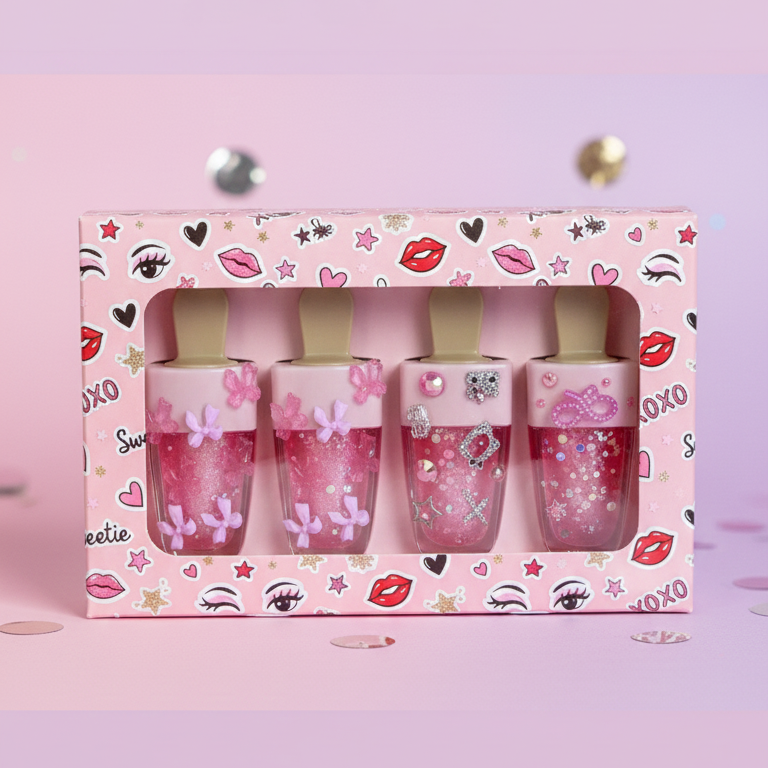 Add a splash of sparkle and a touch of sweetness to your beauty routine! This adorable lip gloss set is designed to look like mini gourmet popsicles, making it a must-have accessory for your vanity or a perfect gift for the beauty lover in your life.
